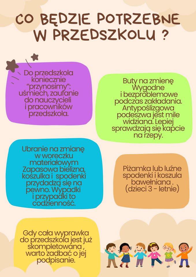 👕 kompletu ubrań na zmianę – dla wszystkich grup,
